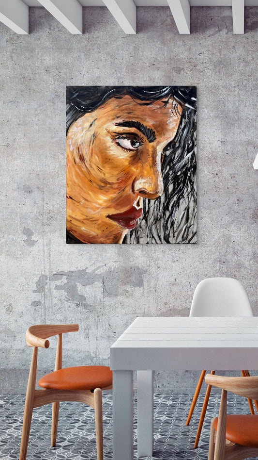 De geschilderde lagen zijn intuïtief, impulsief en emotioneel. Ze tonen chaos, energie en gevoel zonder filter. Daarover of daartussen teken ik met pen realistische figuren, gezichten of details — precies, kwetsbaar en menselijk. Het is een dialoog tussen emotie en bewustzijn, tussen het onderbewuste en het rationele.
