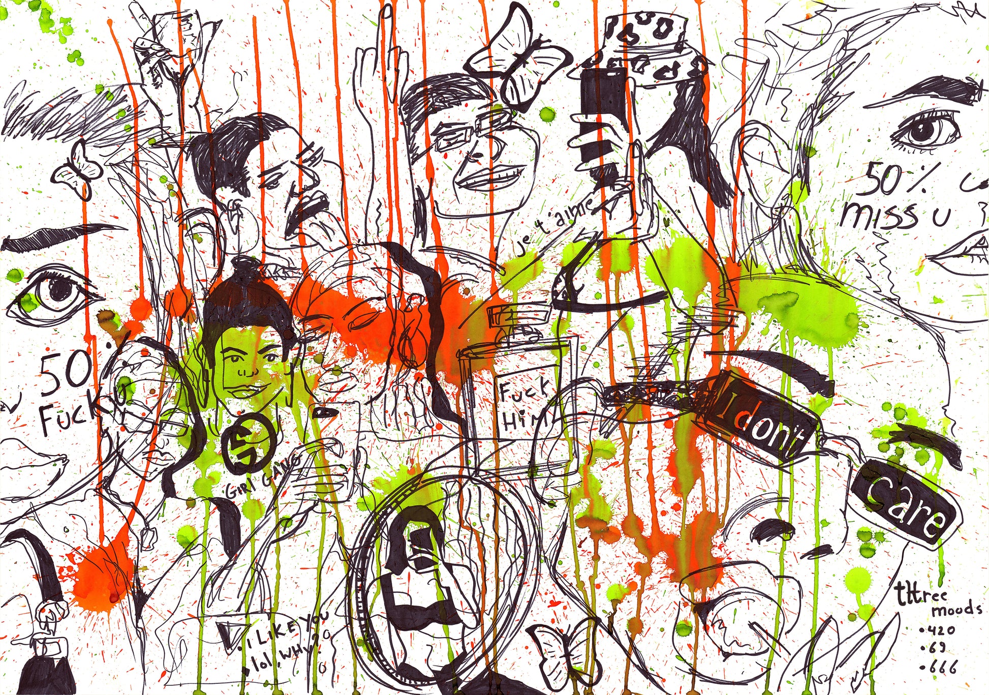 Techniek : Ecoline + zwarte stift