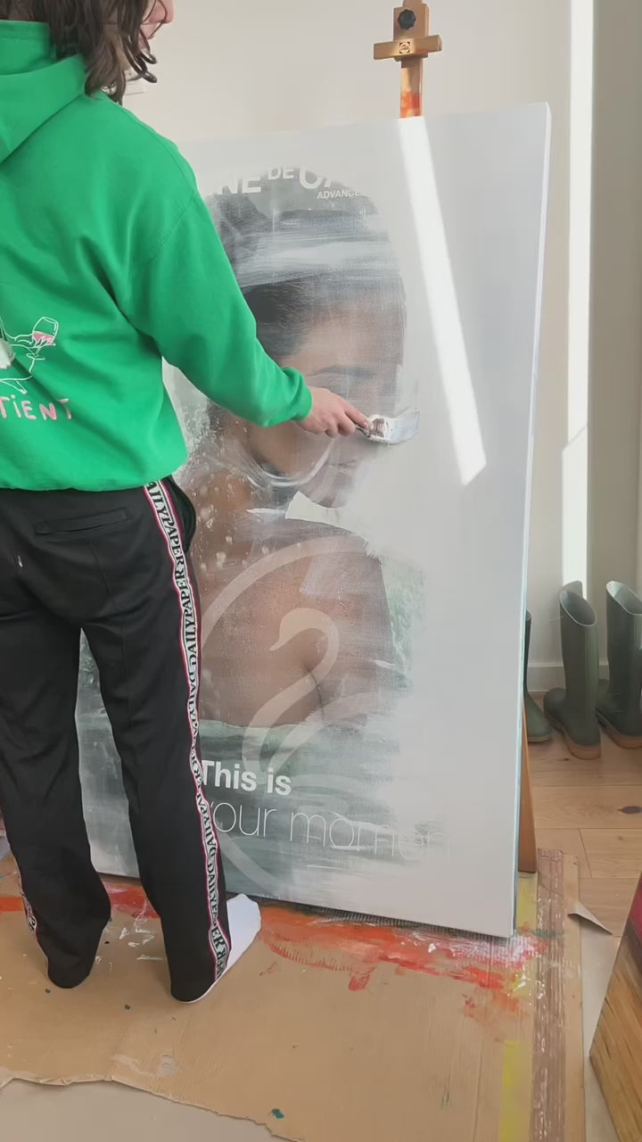 "Kosmetics" vangt de essentie van schoonheid en verfijning in zachte, beige tinten. Dit portret, geïnspireerd door de wereld van cosmetica, straalt een serene en toch krachtige energie uit. De dame in het schilderij kijkt je recht in de ogen en nodigt je uit om de diepte en subtiliteit van haar blik te verkennen. Met zijn ingetogen kleurenpalet en verfijnde details, past "Kosmetics" perfect binnen de esthetiek van moderne schoonheidsreclames.