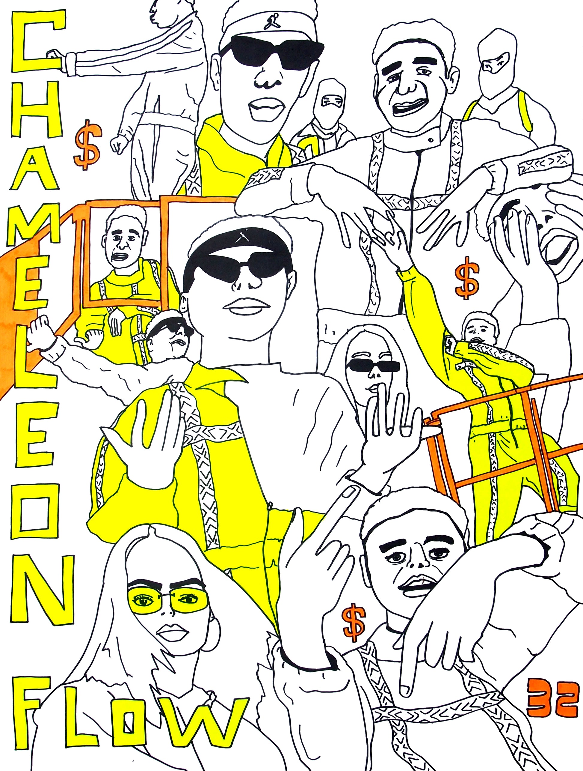 Illustratie gebaseerd op de videoclip van Yung Mavu - Chameleon Flow